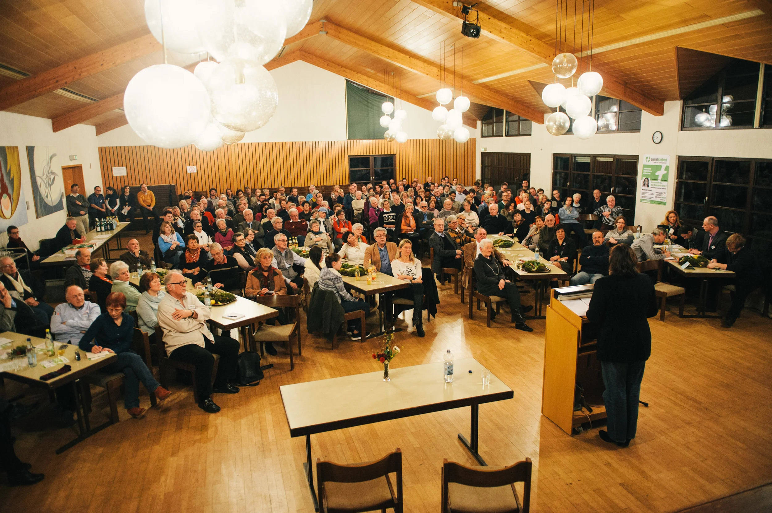 Eingangs schilderte sie das Idealbild eines Bio-Bauernhofs, mit artgerechter Tierhaltung, sparsamem Düngereinsatz, keinen Antibiotika, Beiträgen zum Umweltschutz und fairen Löhnen. Um dann deutlich zu machen, dass diese Höfe aussterben. Die „Massenware Bio“ macht ihnen den Garaus. Spiegel-Reporterin Michaela Schießl war bei „Punktsieben“, dem Diskussionsforum der evangelischen Kirchengemeinde Walldorf, zu Gast und hob eindringlich nicht nur die Probleme der Bio-Höfe hervor, sondern auch, warum sie eine umfassende Agrarwende für dringend geboten hält. Der Saal des evangelischen Gemeindehauses war voll besetzt, das Interesse der Besucher groß.