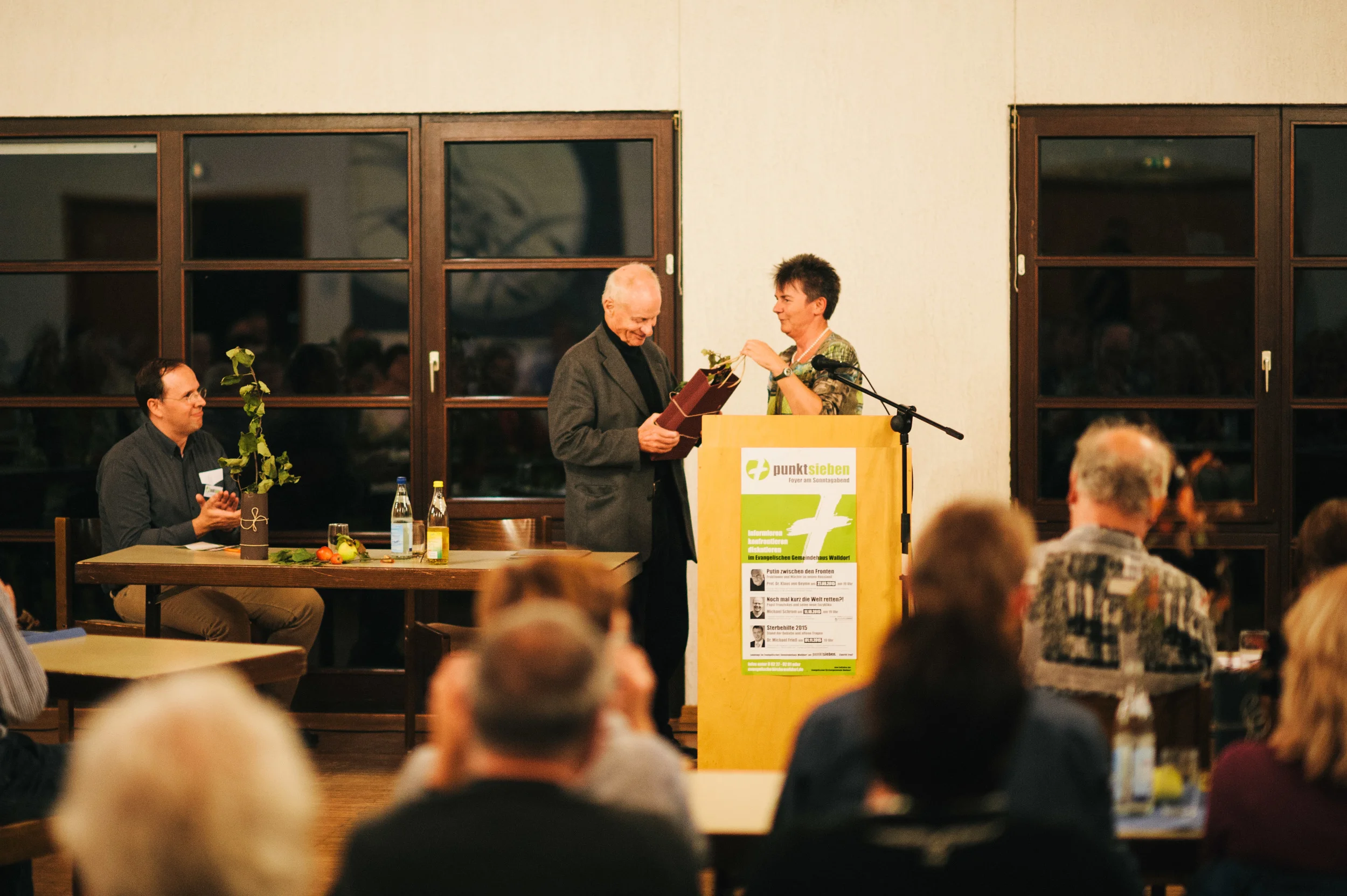 Um Punkt Sieben ging es los: Johannes Franzowski vom punktsieben-Team erinnerte an die deutsch-russische Freundschaft zu Zeiten Gorbatschows, als Russlands Präsident „für uns noch der Gorbi war“. Auch Putin habe bis 2000 als Westler gegolten, bemerkte von Beyme. Er habe aber versäumt, die Wirtschaft und die Zivilgesellschaft zu entwickeln.
